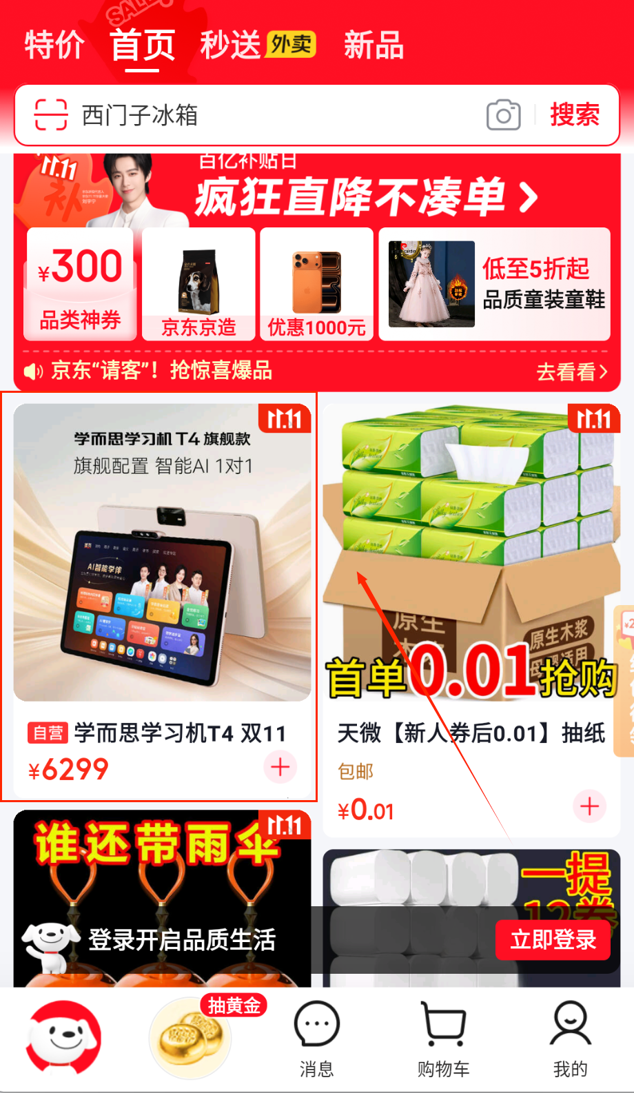2、首页的“国家补贴”专区经常有低价好物,比如家电、日用品,点击商品图标查看详情,加入购物车后统一结算更便捷呀。