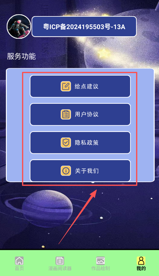 4、给点建议功能其实是个社交窗口,你的反馈能让开发者更懂用户需求,而用户协议和隐私政策则是社区运行的共同规则。