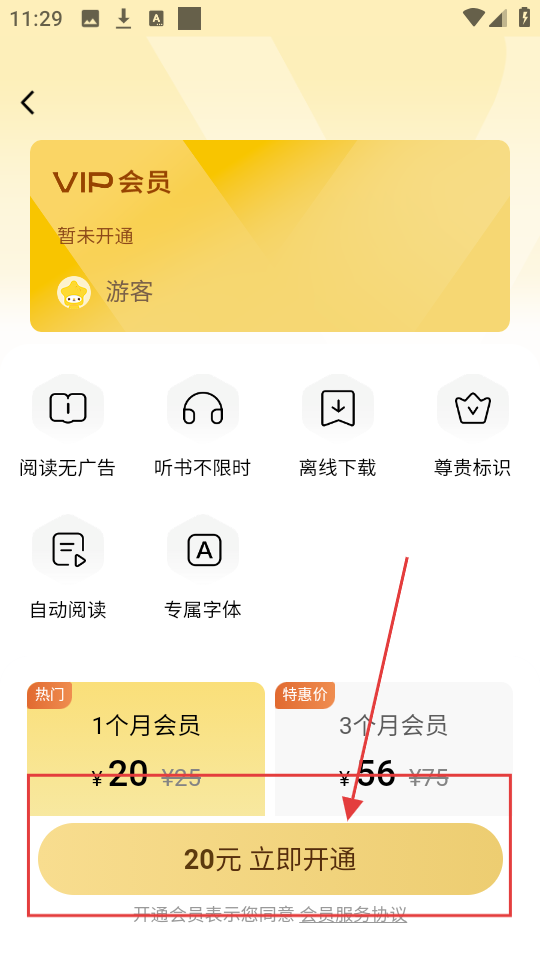 4、VIP会员页选套餐后点【20元立即开通】,完成支付开通会员,即可下载全本,是不是很赞呀。
