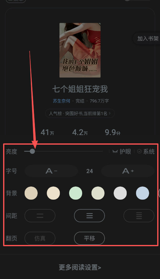 4、阅读设置选项允许用户自由调整界面背景和字体样式,打造最符合个人喜好的阅读环境,让您畅享无阻阅读乐趣。