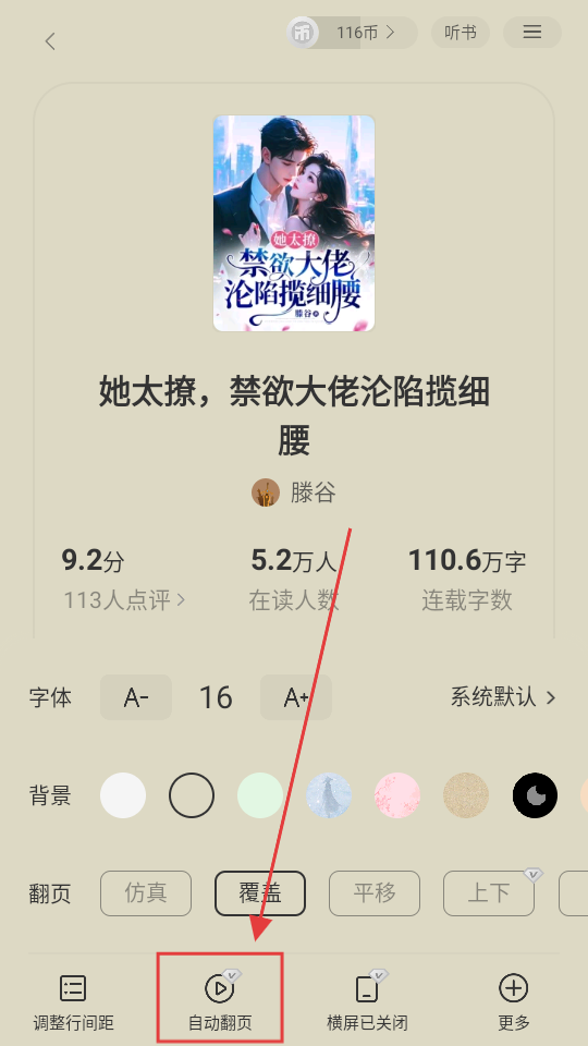 3、在设置里,可开启【自动翻页】功能,阅读起来超方便的呢。