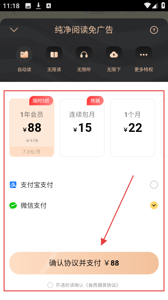 4、若需开通会员,选择会员类型和支付方式后,点击【确认协议并支付】就能完成啦。