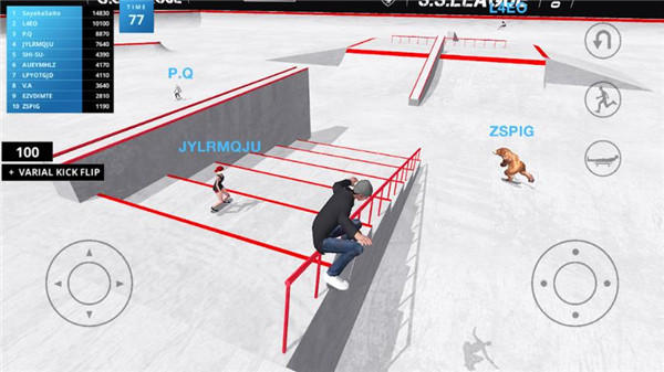1、游戏中本地多人联机,多种互动玩法,让玩家享受全新的滑板玩法。
