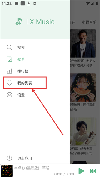 3、打开侧边栏菜单,点击【我的列表】,进入个人收藏列表页面,查看收藏内容哦。