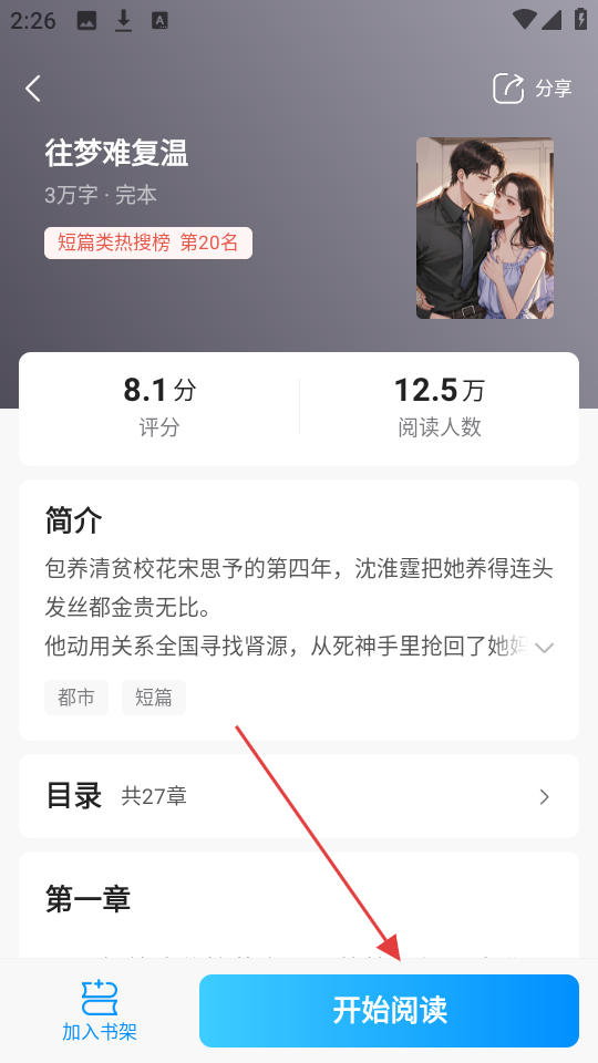 2、在书籍详情页点击【开始阅读】,就能进入阅读界面,开启阅读之旅啦。
