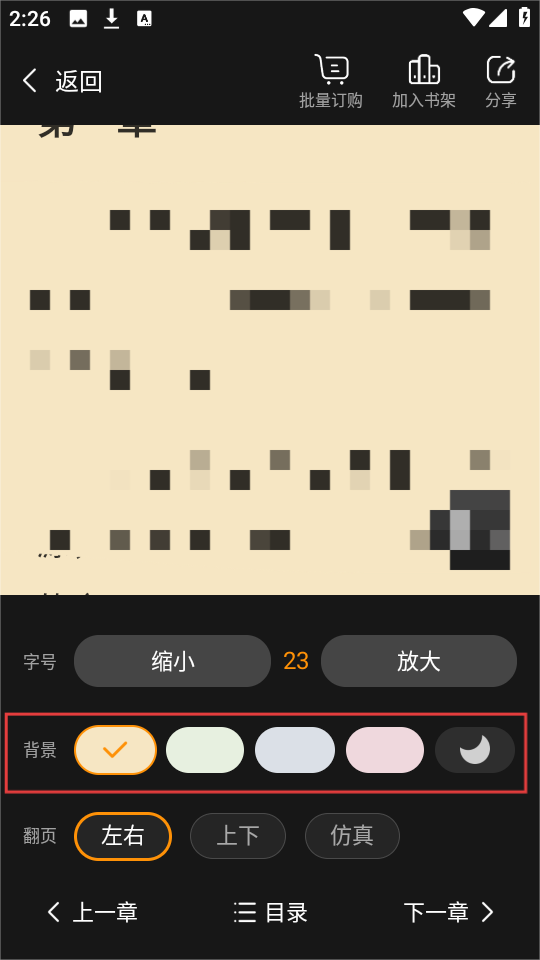 3、在阅读界面点击背景选项,就能切换阅读背景,选择喜欢的背景样式哦。
