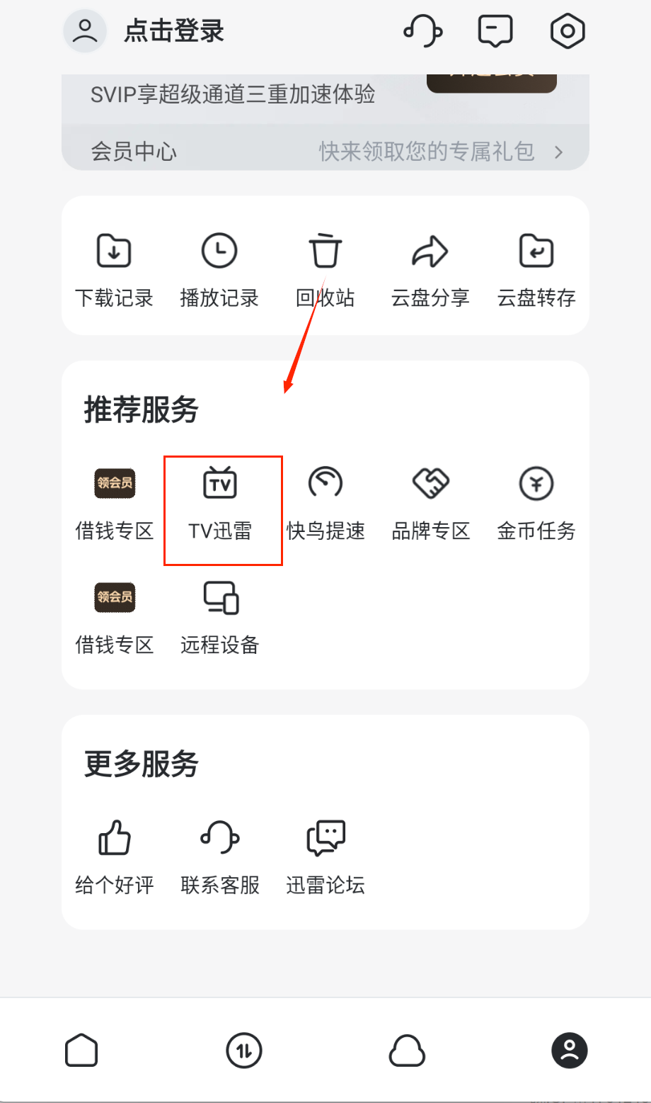 4、云盘里的TV迅雷适合大屏观看,快鸟提速优化网络环境,金币任务能赚取福利,远程设备管理很便捷,多探索发现宝藏功能啦。
