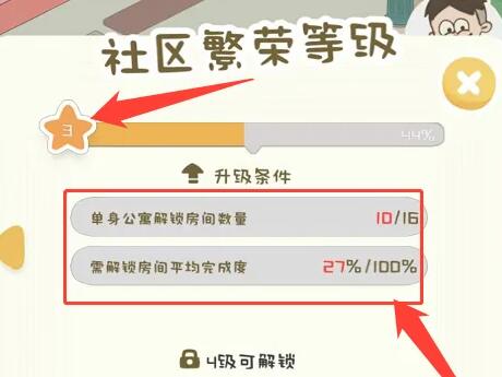 进入页面后可以看到,升到4级需要同时满足两个条件,如图所示。