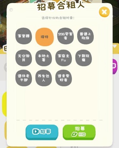 2、玩家在这里可以选择什么也不做,用你的金币招募更多的租客前来居住。