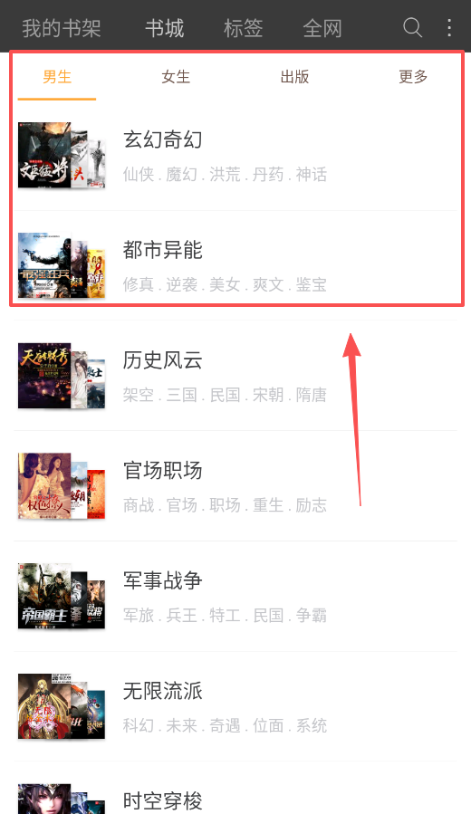 1、软件分为四个核心模块:书城提供分类导览,标签实现关键词检索,全网聚合外部资源,书架专注个人收藏管理。