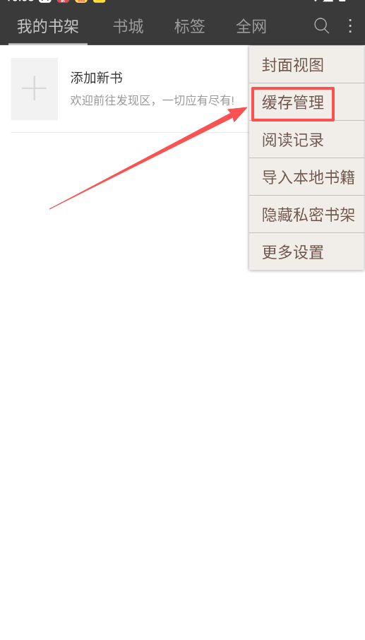 4、书架管理支持个性化设置,如开启封面视图提升视觉体验,使用缓存管理优化存储,还能通过导入功能整合本地图书。