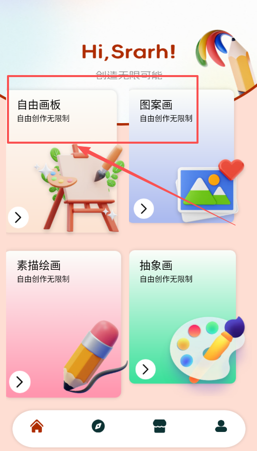 2、看到有想画的冲动了,就直接点下面四个画板里的任何一个,每个都能让你自由地画,没有太多条条框框。