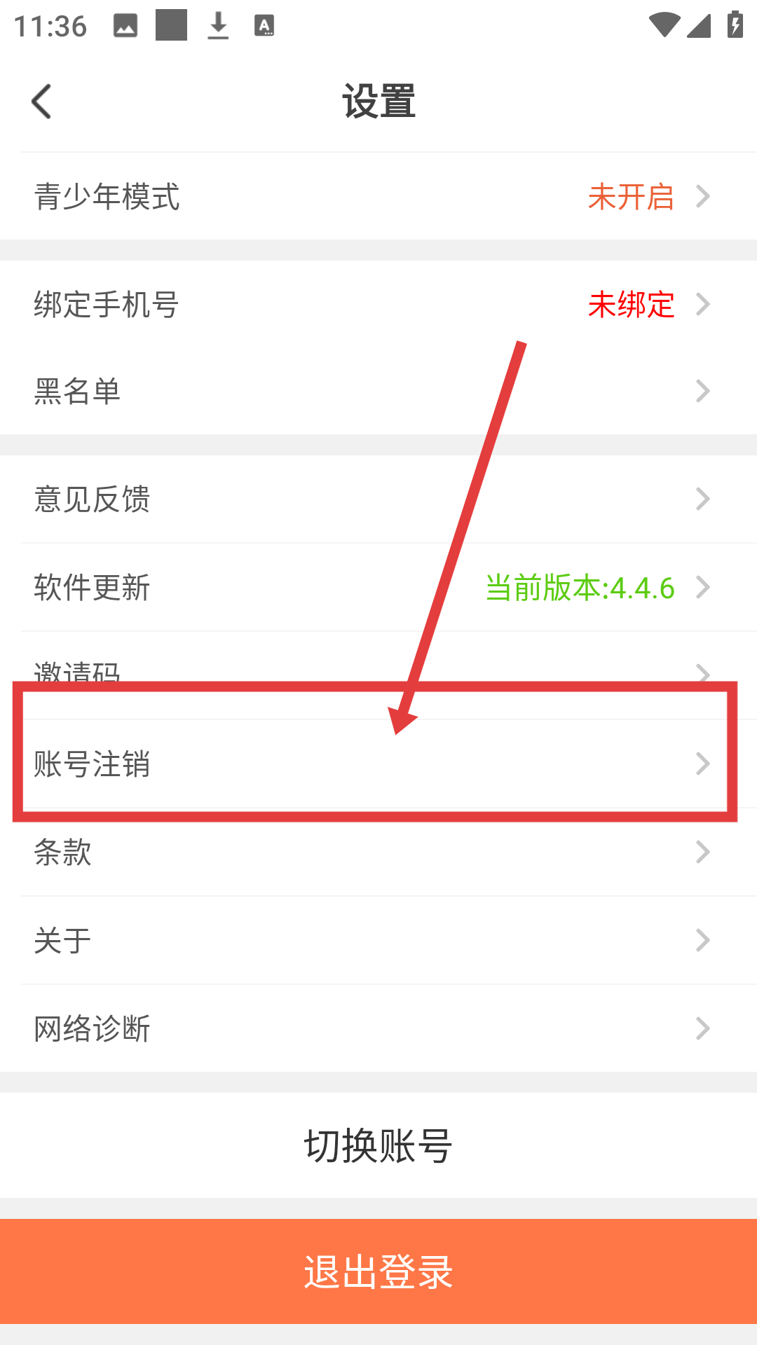 3、在设置界面点击【账号注销】,进入账号注销界面,准备注销账号哦。