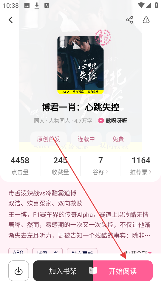 2、点击心仪书籍进入详情页后,点击【开始阅读】,即可开启阅读之旅哦。