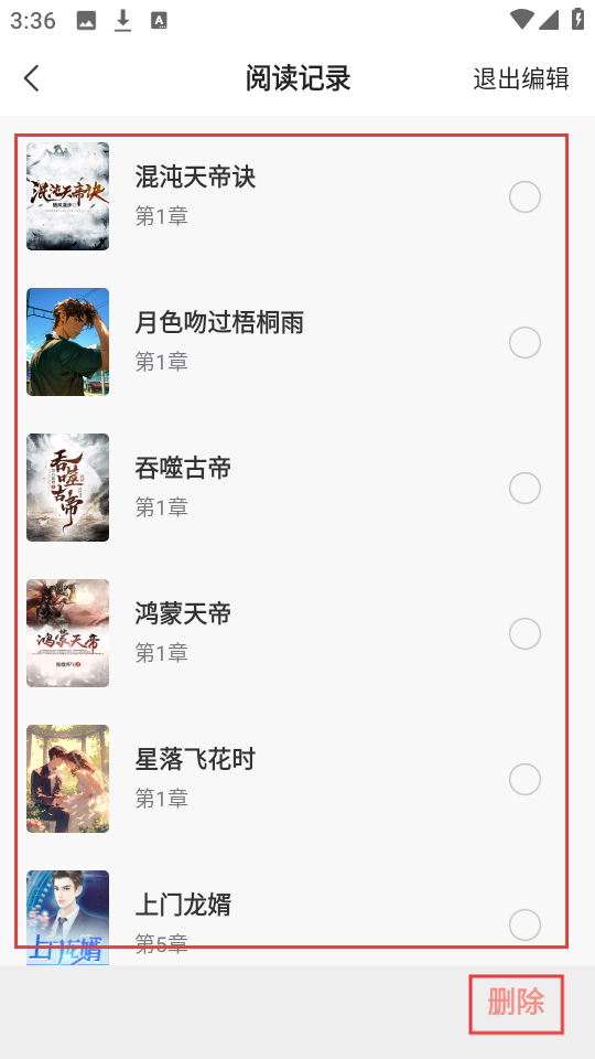 4、要是想删除阅读记录,就点击【编辑】,勾选要删的记录,再点【删除】,超方便的。