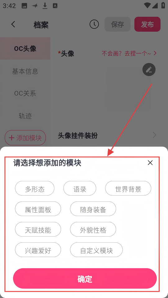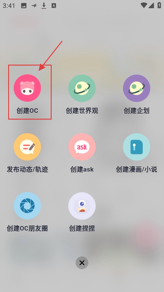 2、展开后,选择【创建OC】选项,就能进入OC创建相关页面,开始创建吧。