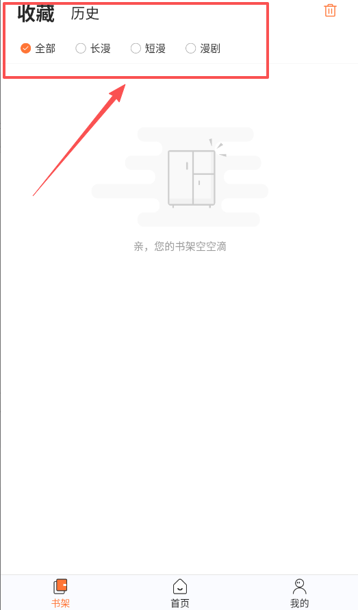 4、个性化管理您的阅读内容,在这里您可以查看收藏记录与阅读历史,并将喜爱之作加入书架。