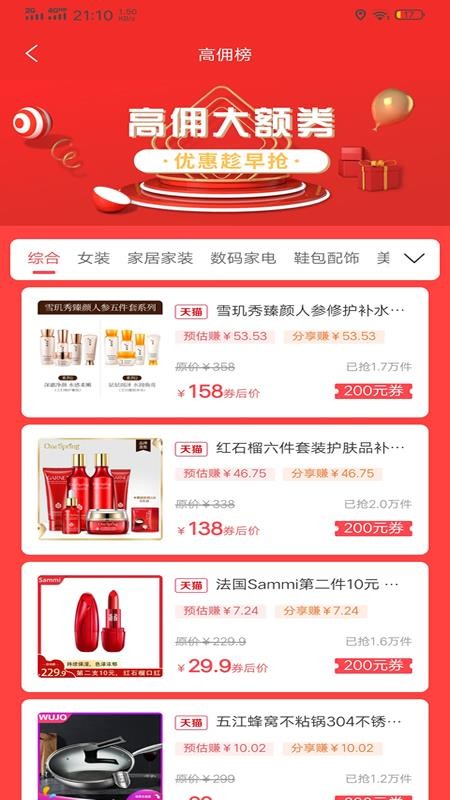 3、商品分享,一键即可轻松将商品分享给好友,好友购买,用户即可赚取到巨额佣金。