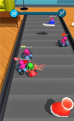 3、在每一场的比赛当中,都会有精彩的画面所呈现,卡丁车之间碰撞战斗。