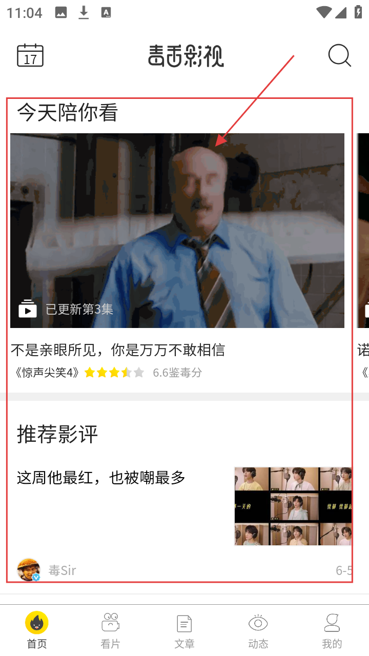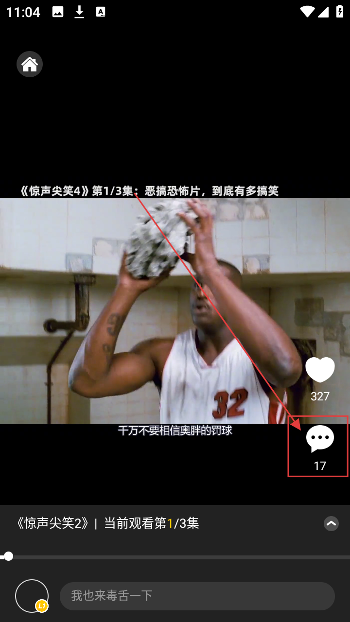 1、在毒舌影视APP首页,点击《惊声尖笑4》的推荐内容,可进入该影视的播放页面,准备参与评论互动啦。
