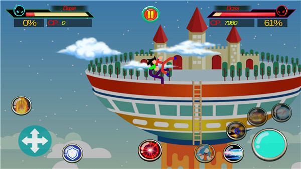 1、火柴人之神3游戏中有很多控制体验,对应这些不同的技能,让玩家可以更好的进行对抗。