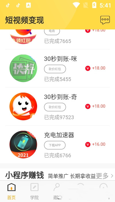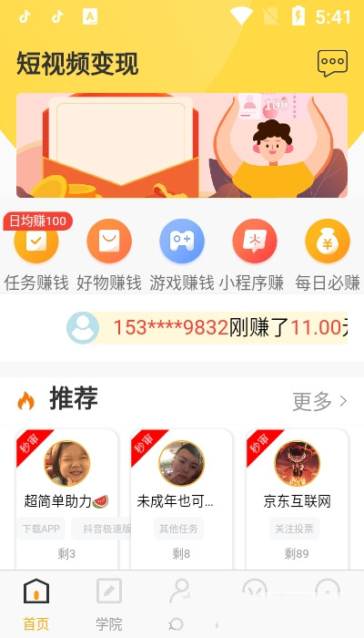2、短视频学院线上也有很多日常任务,只要完成推广任务,这样用户就能获得一定的收益。