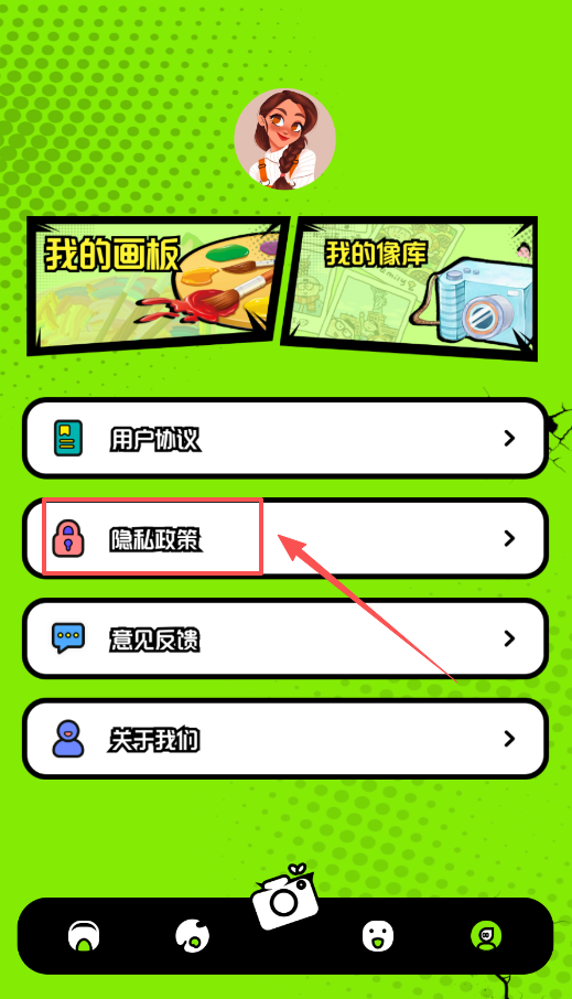 4、完成头像制作后,记得去“我的图库”查看成品。在使用软件的整个过程中,底部的“用户协议”和“隐私政策”值得你稍作了解。