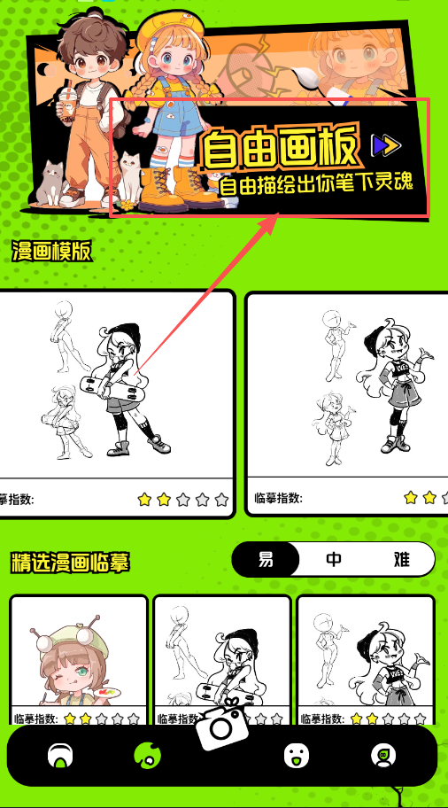2、进阶一点,试试“我的画板”功能。你可以在这里上传自己的清晰照片,一键生成漫画效果,或者用绘画工具涂涂画画。
