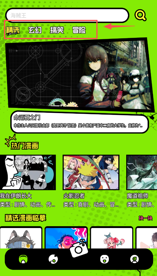 1、打开软件,别被界面吓到,最先看到的就是“漫画头像”和“精选头像”这两个大入口。