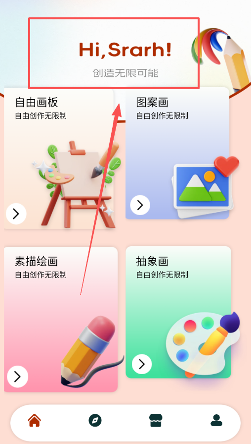 2、确定视觉方向后,切换至对应的创作画板,比如想画可爱风格可用图案画,想画写实风格可用素描绘画进行尝试。