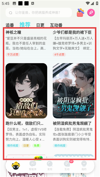 1、在推荐界面点击目标作品封面(如【跑什么呢,宿敌们只想往死里亲】),就能进入该作品的详情页面啦。