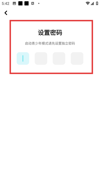 4、开启青少年模式前需设置独立密码,在【设置密码】页面输入四位密码,就能完成模式开启的关键步骤啦。