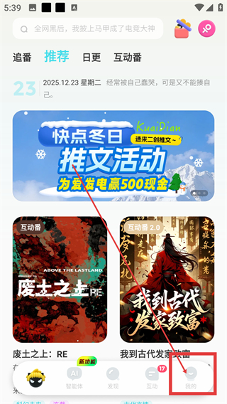 1、首页推荐热门内容,智能体提供角色互动,发现页探索新作品,互动区查看社交动态,我的管理个人设置,建议从首页开始浏览最省心呢。