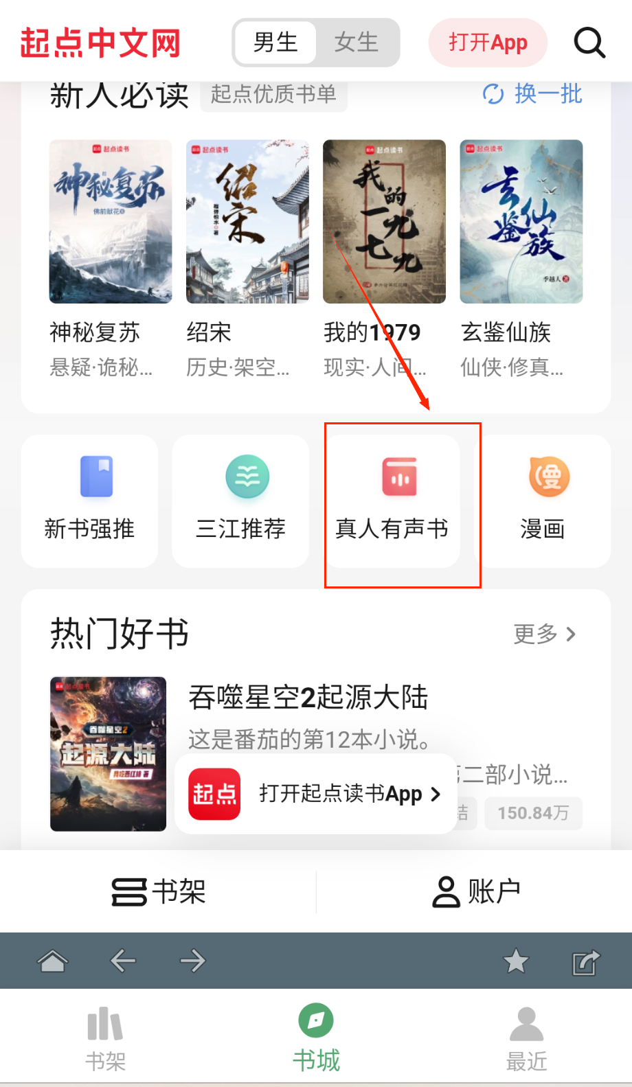 1、找一本你喜欢的小说,不同风格的好小说这里都是可以观看的的,符合不同内容的期望。