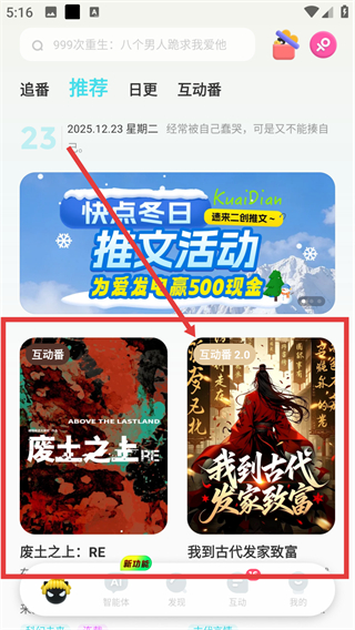 1、在推荐界面点击【我到古代发家致富】的封面,就能进入该互动番的详情页面,准备开启剧情啦。