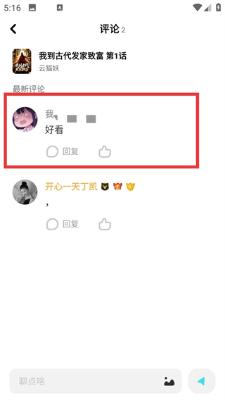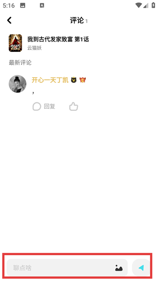 3、在评论页面点击底部【聊点啥】输入框,输入想分享的内容,就能参与该互动番的评论互动啦。