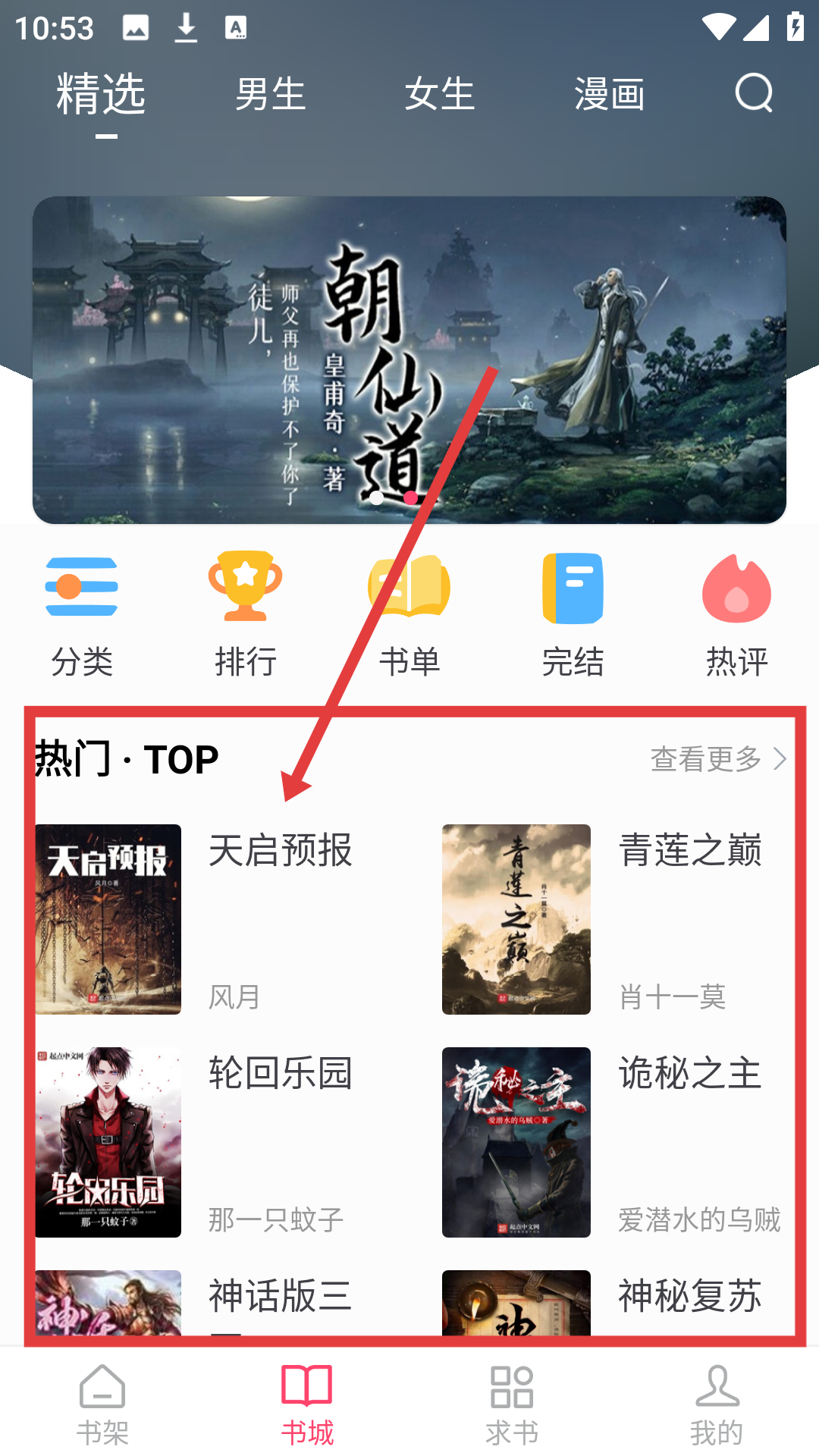 1、在书城热门TOP区域挑选喜欢的小说,比如《轮回乐园》,点击进入详情页哦。