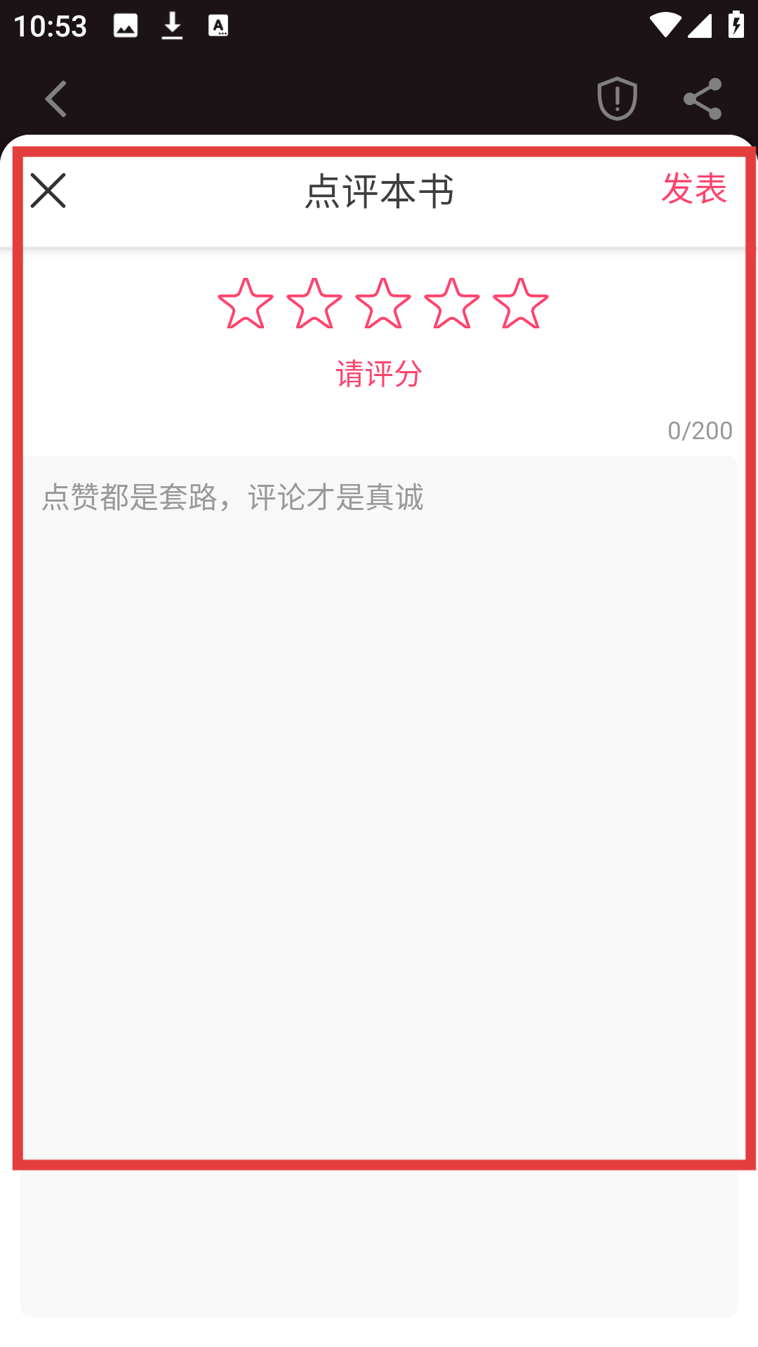 4、在点评本书页面进行评分、撰写评论后,点击【发表】即可发布书评啦。