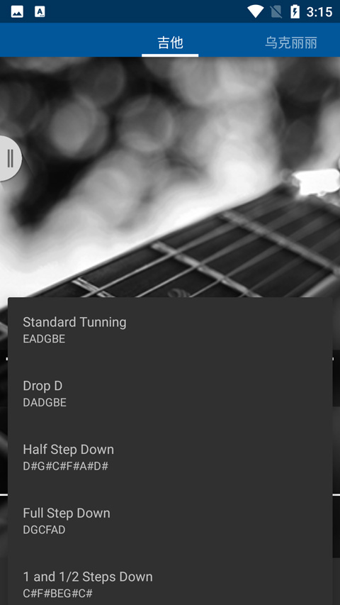 2、乐器调音,模拟了吉他、乌克丽丽、四弦五弦六弦贝斯、小提琴等等乐器,可以为他们进行调音适试音