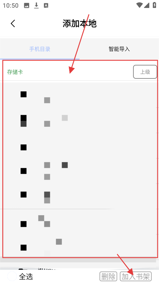 4、在添加本地页面,选择存储卡中的书籍,点击【加入书架】,可将本地书籍添加到书架,方便阅读哦。