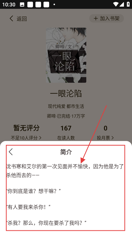 3、点【详情】后就能看到小说简介啦,了解剧情背景超方便的哟。
