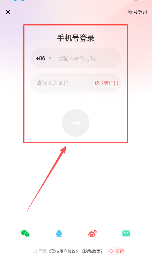 1、首先完成账号注册登录哦,选择手机号登录,输入号码并获取验证码,记得勾选同意用户协议和隐私政策。