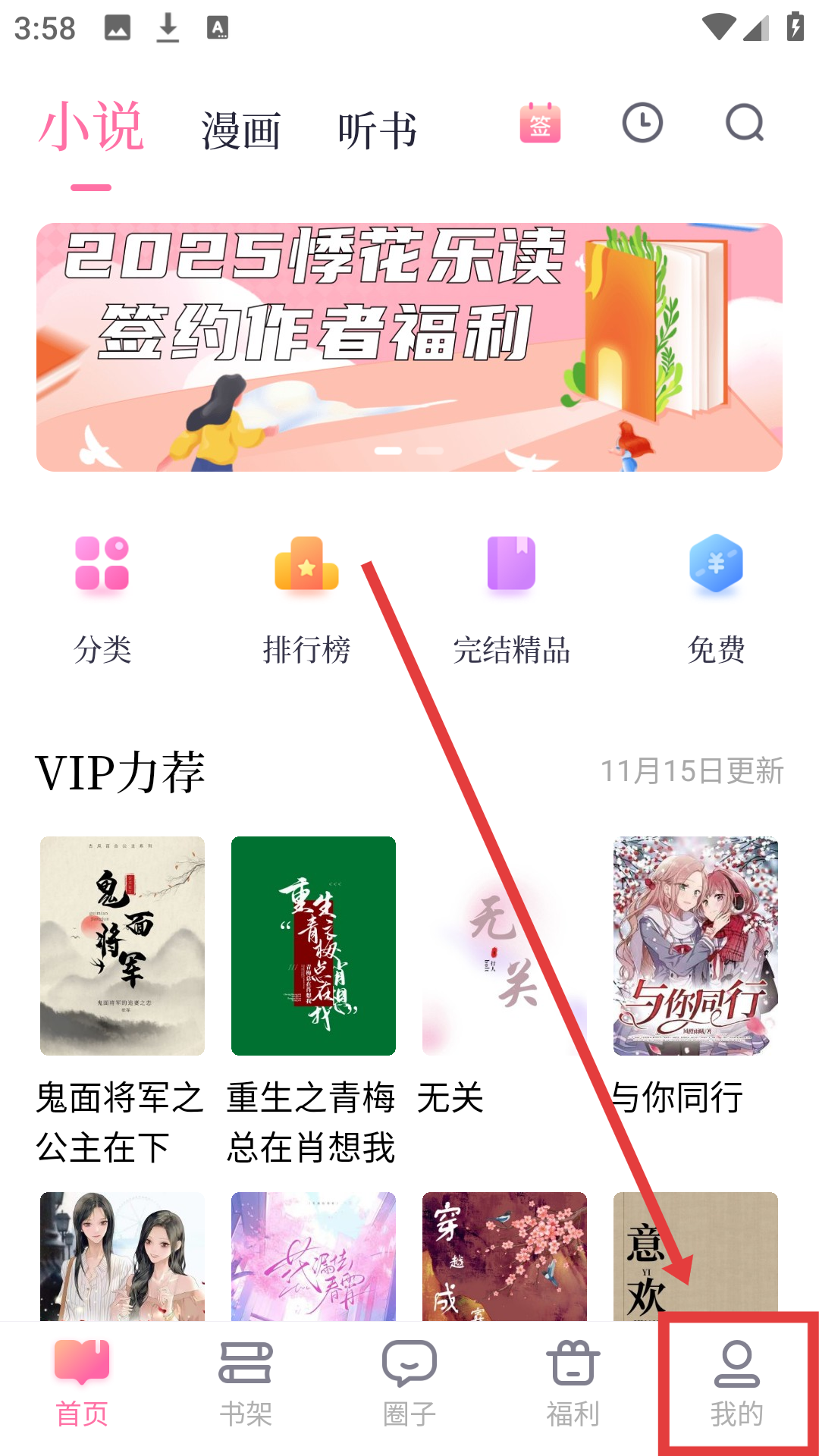 1、在小说APP首页,点击【我的】,可进入个人中心页面,准备管理阅读历史啦。