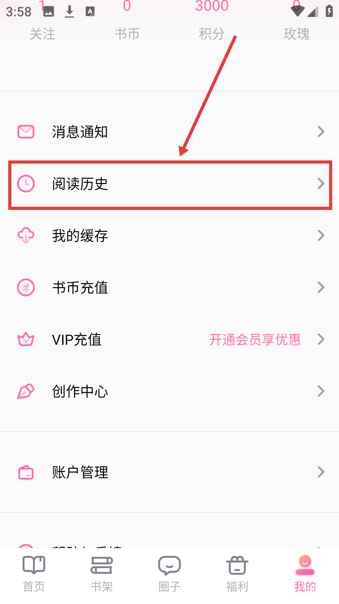 2、进入个人中心页面后,点击【阅读历史】,可查看过往阅读的小说记录哦。