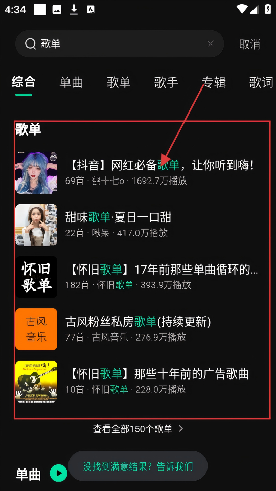1、在音乐页面的搜索框输入【歌单】,就能查找各种歌单,快去试试搜索吧。
