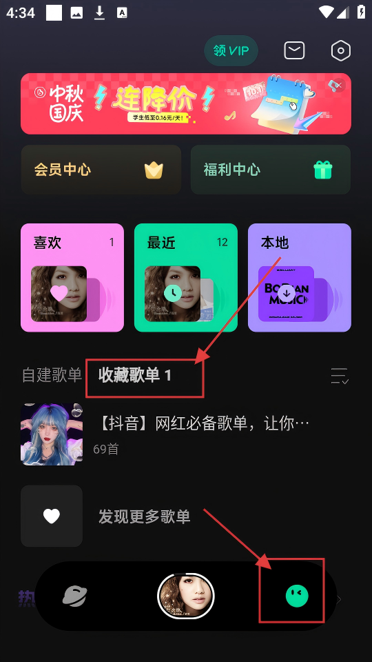 4、收藏后,在【收藏歌单】里能看到收藏的歌单,方便随时查看和播放哦。