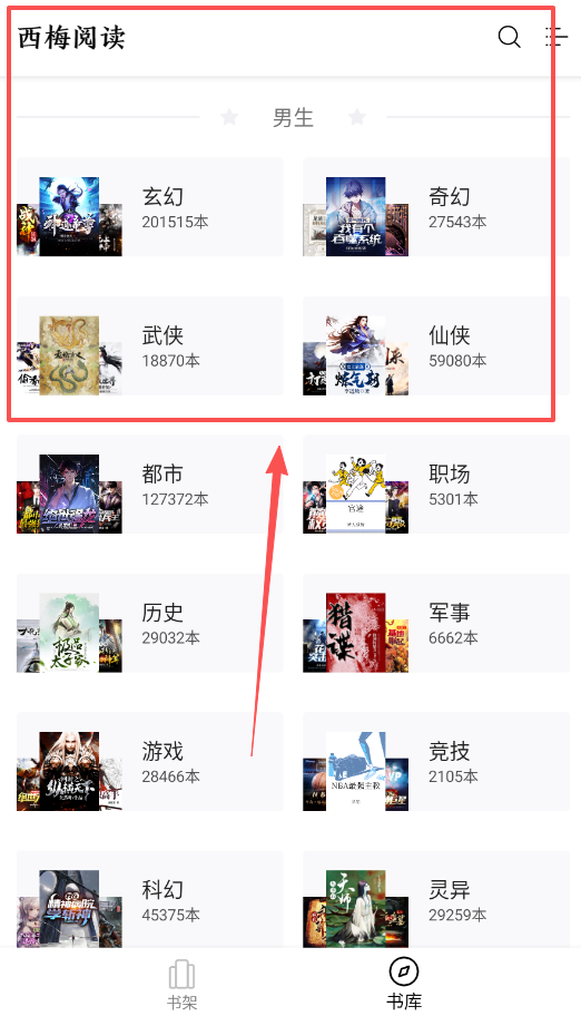 2、海量书库是它的亮点,书籍被精细地划分为玄幻、武侠、科幻、灵异等数十种题材。