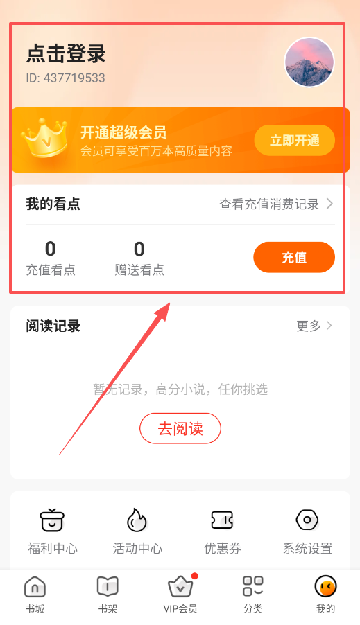 1、登录与账户管理,你可以先点击首页的点击登录,可以查看充值消费记录、管理阅读记录,方便你管理自己的账户和权益。