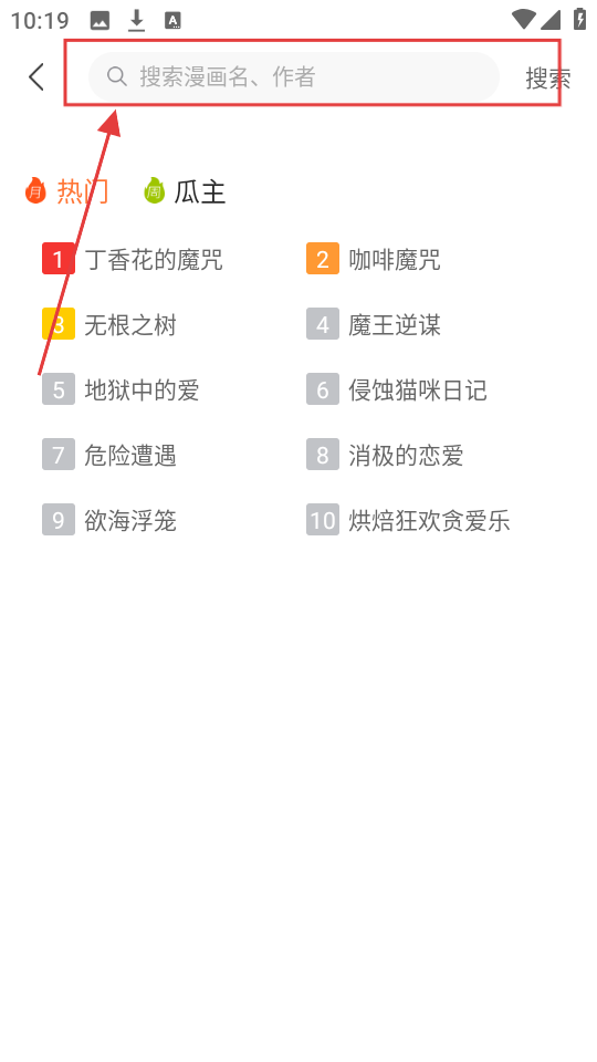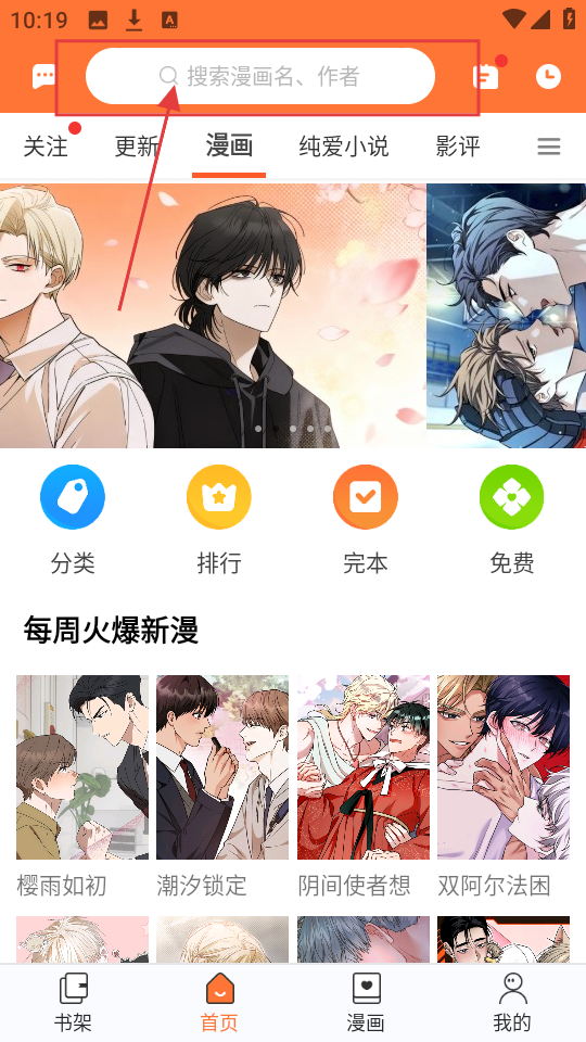 1、在首页点击搜索框,输入漫画名或作者,就能查找你想看的漫画啦,是不是很方便呀。