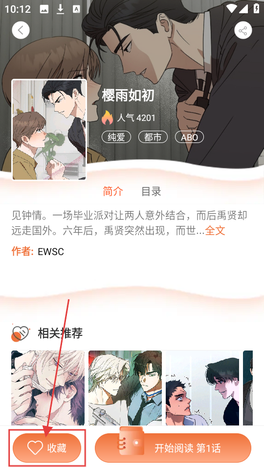 2、进入漫画详情页后,点击【收藏】,可将该漫画加入收藏,方便后续查看哦。